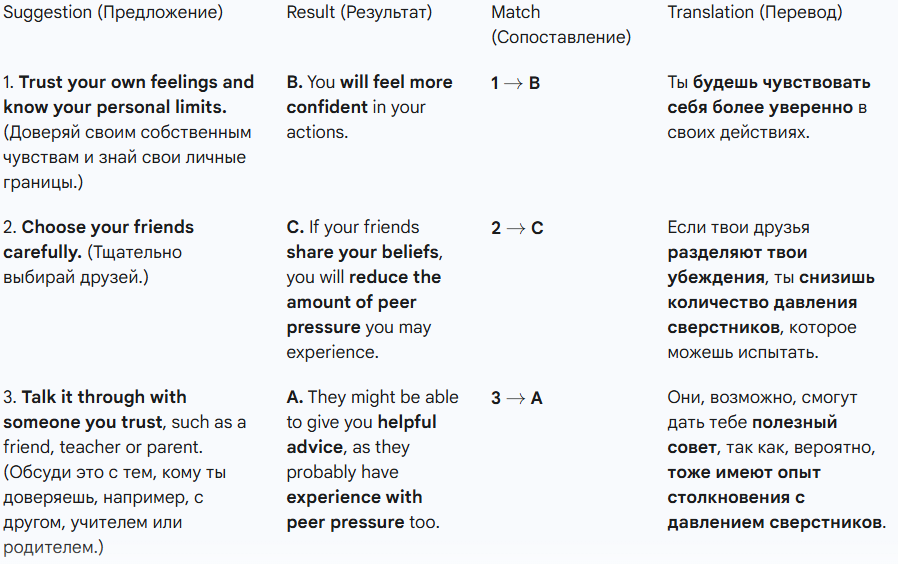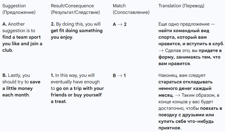 2. Match the suggestions/consequences (A-C) to the possible results/consequences (1-3). (Сопоставьте предложения/последствия (A-C) с возможными результатами/последствиями (1-3).)