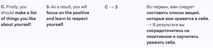 3. Read the rubric. Match the suggestions to the results. (Прочитайте задание. Сопоставьте предложения с результатами.)