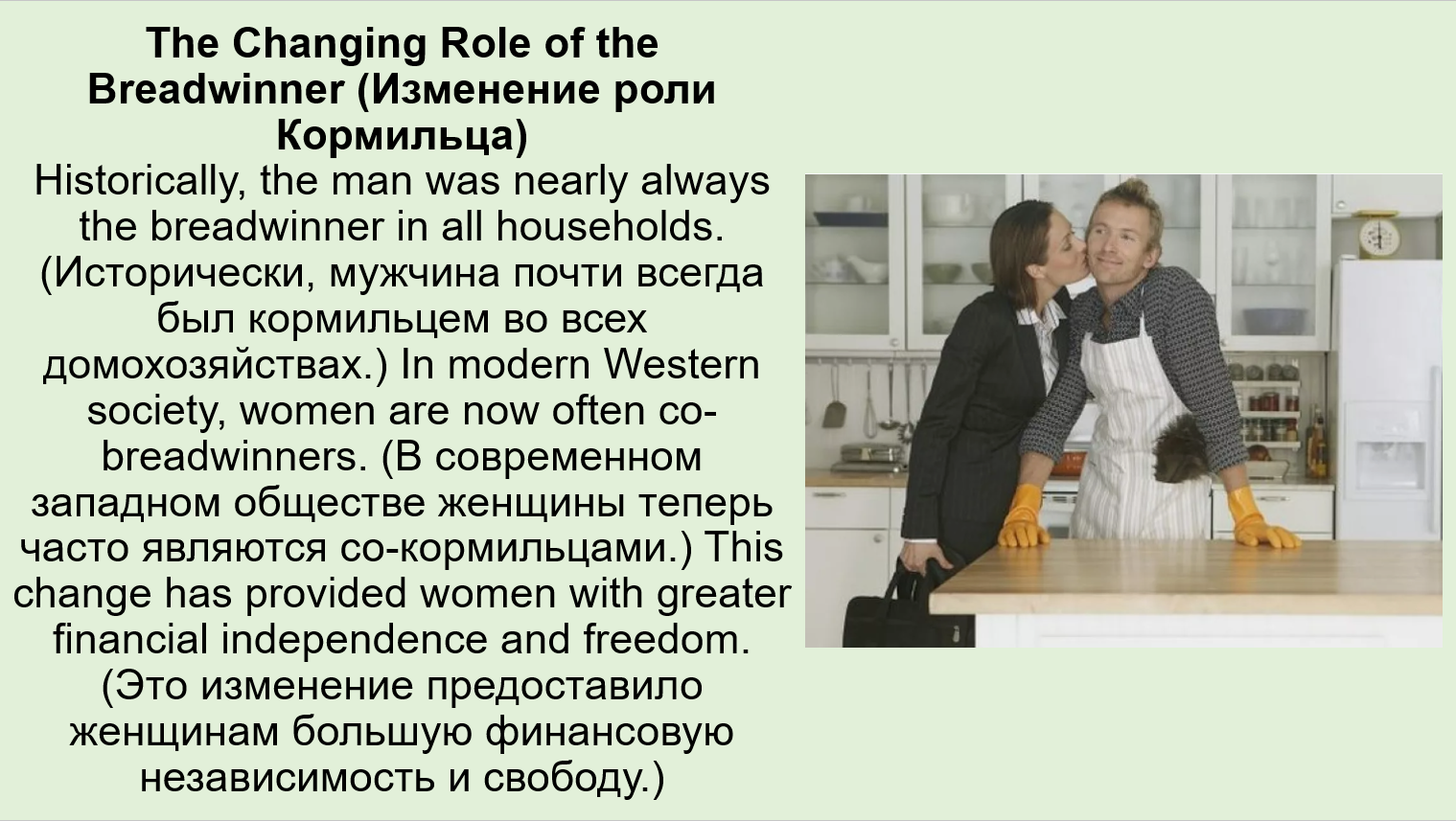 Добавить текст Вернуть оригиналI learned that the Victorian father was the breadwinner (кормильцем) and was treated with the greatest respect (относились с величайшим уважением).
