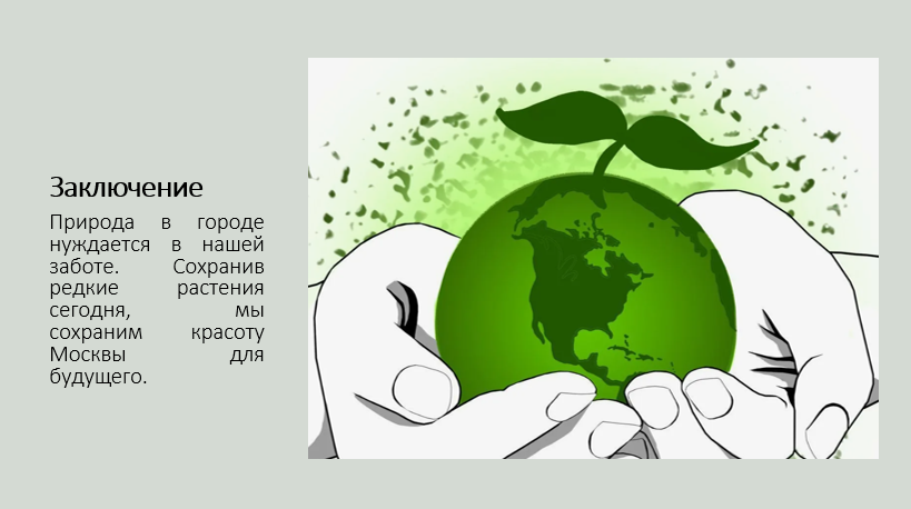 Добавить текст Озвучить Вернуть оригинал7. Заключение. Призыв к бережному отношению к городской природе.