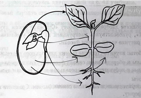 3. Сравните части семени и проростка. Покажите стрелками на схеме, из каких частей семени развились соответствующие части проростка.