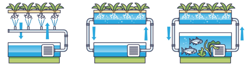 Понятие гидропоники (выращивание в питательном растворе) и аэропоники (опрыскивание корней).