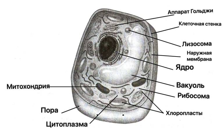 Различия между растительной и животной клетками заключаются в том, что клетки растений имеют плотную клеточную стенку из целлюлозы, крупные вакуоли с клеточным соком и особые органоиды — пластиды (хлоропласты, лейкопласты и хромопласты), которые отсутствуют в клетках животных.