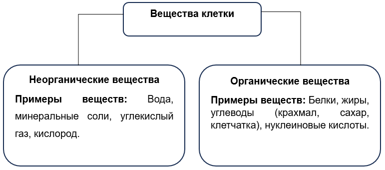 2. Заполните схему «Вещества клетки».