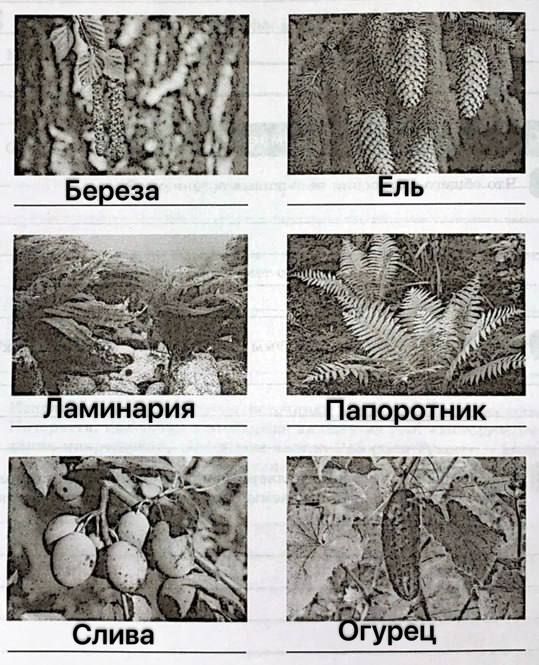 5. Определите, какие из изображённых растений являются покрытосеменными. Подпишите названия растений.