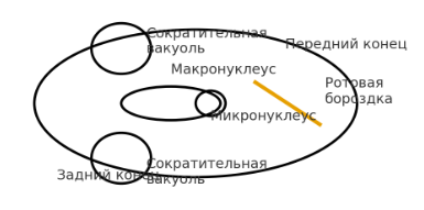 Большое ядро (макронуклеус) играет роль в регуляции процессов обмена веществ и жизнедеятельности клетки.