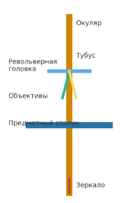 1. Устройство светового микроскопа состоит из механической (штатив, столик), осветительной (зеркало, конденсор, диафрагма) и оптической (окуляр, объективы) частей.