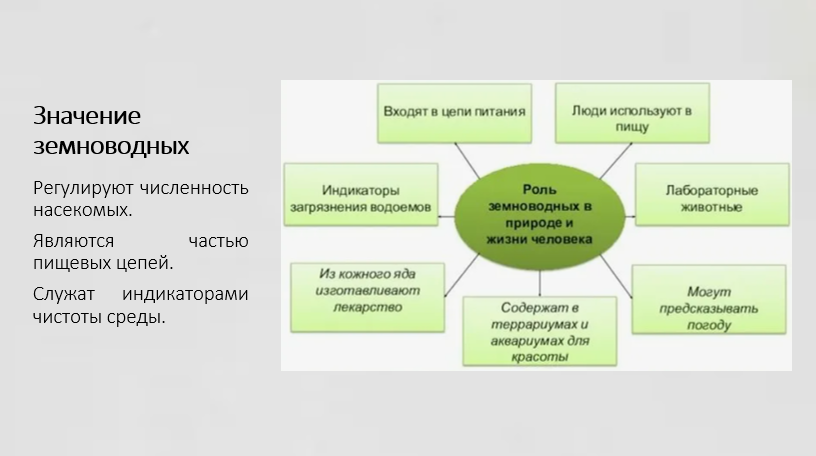 Добавить текст Озвучить Вернуть оригиналЗемноводные играют важную роль в природе, так как регулируют численность насекомых-вредителей и служат пищей для птиц, рыб и млекопитающих. Однако численность земноводных сокращается из-за загрязнения водоёмов, вырубки лесов и осушения болот. Поэтому многие виды нуждаются в охране.