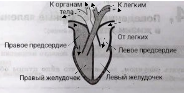 4. На рисунке подпишите названия отделов сердца птицы, укажите стрелками направления движения крови.