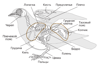 5. Обозначьте на рисунке отделы опорно-двигательной системы птиц, связанные с полетом.