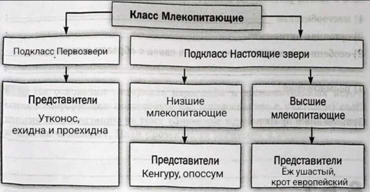 | Млечные железы | Развиты слабо, открываются наружу расширенными порами без сосков. | Имеют соски, которые открываются в сумку. | Хорошо развиты, у приматов расположены на груди. |