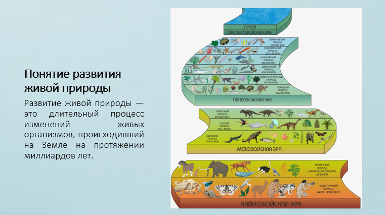 Развитие живой природы продолжается и в настоящее время, так как организмы постоянно приспосабливаются к изменяющимся условиям среды.