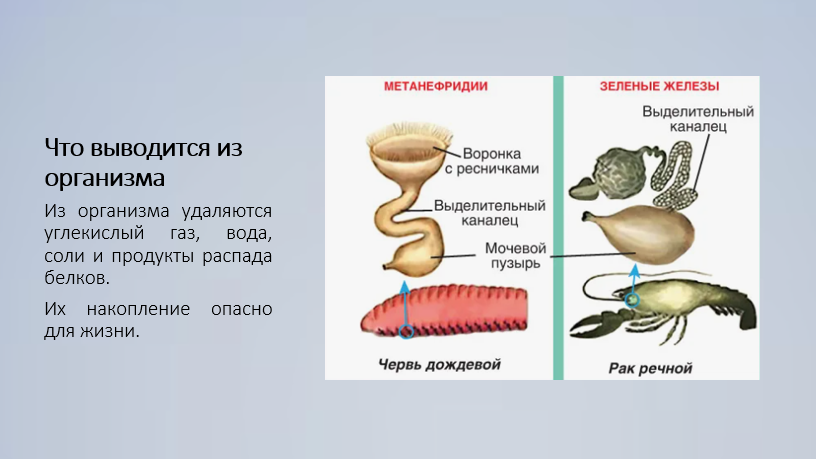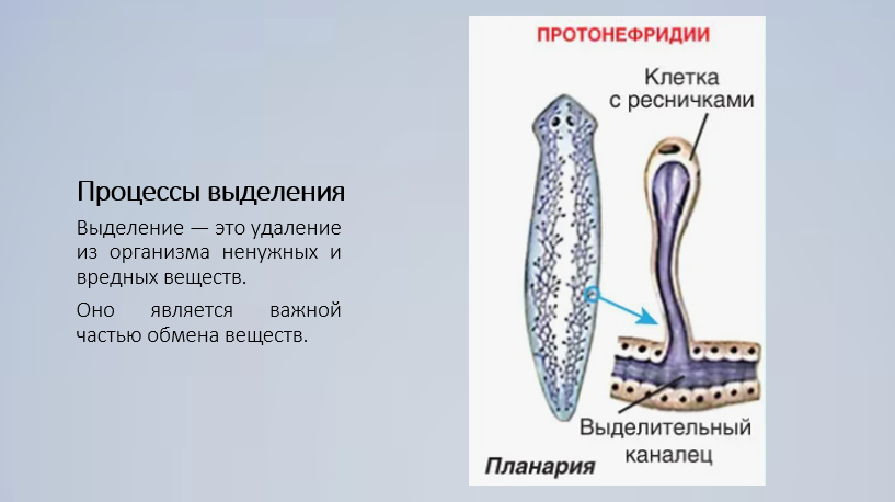 Добавить текст Озвучить Вернуть оригиналПроцессы выделения играют важную роль в жизнедеятельности животных. Выделение — это удаление из организма конечных продуктов обмена веществ, излишков воды и солей, а также вредных и токсичных веществ.