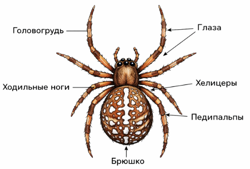 Добавить текст Озвучить Вернуть оригиналПосле выполнения работы зарисуйте паука-крестовика и укажите отделы его тела.