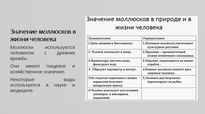 Значение моллюсков в жизни человека