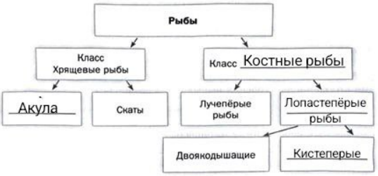 2. Изучив текст параграфа, дополните опорную схему «Рыбы».