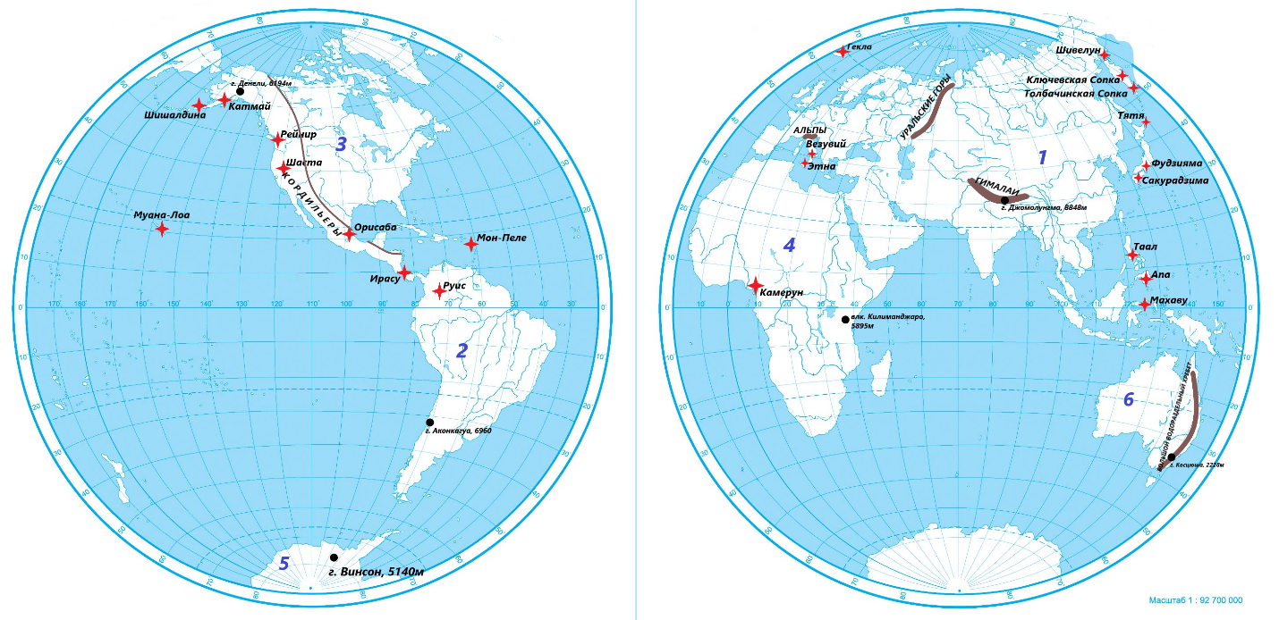 Карта полушарий. Физическая карта.