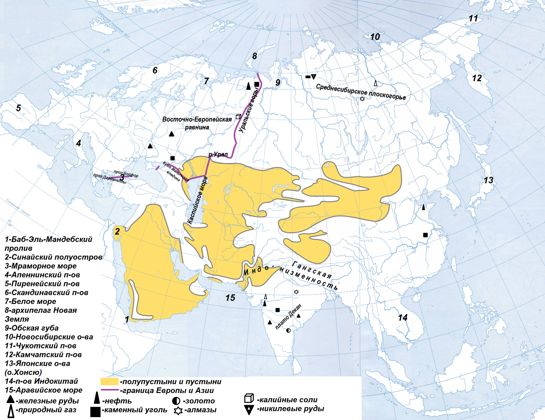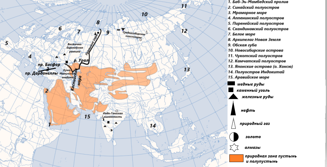 Евразия. Физическая карта