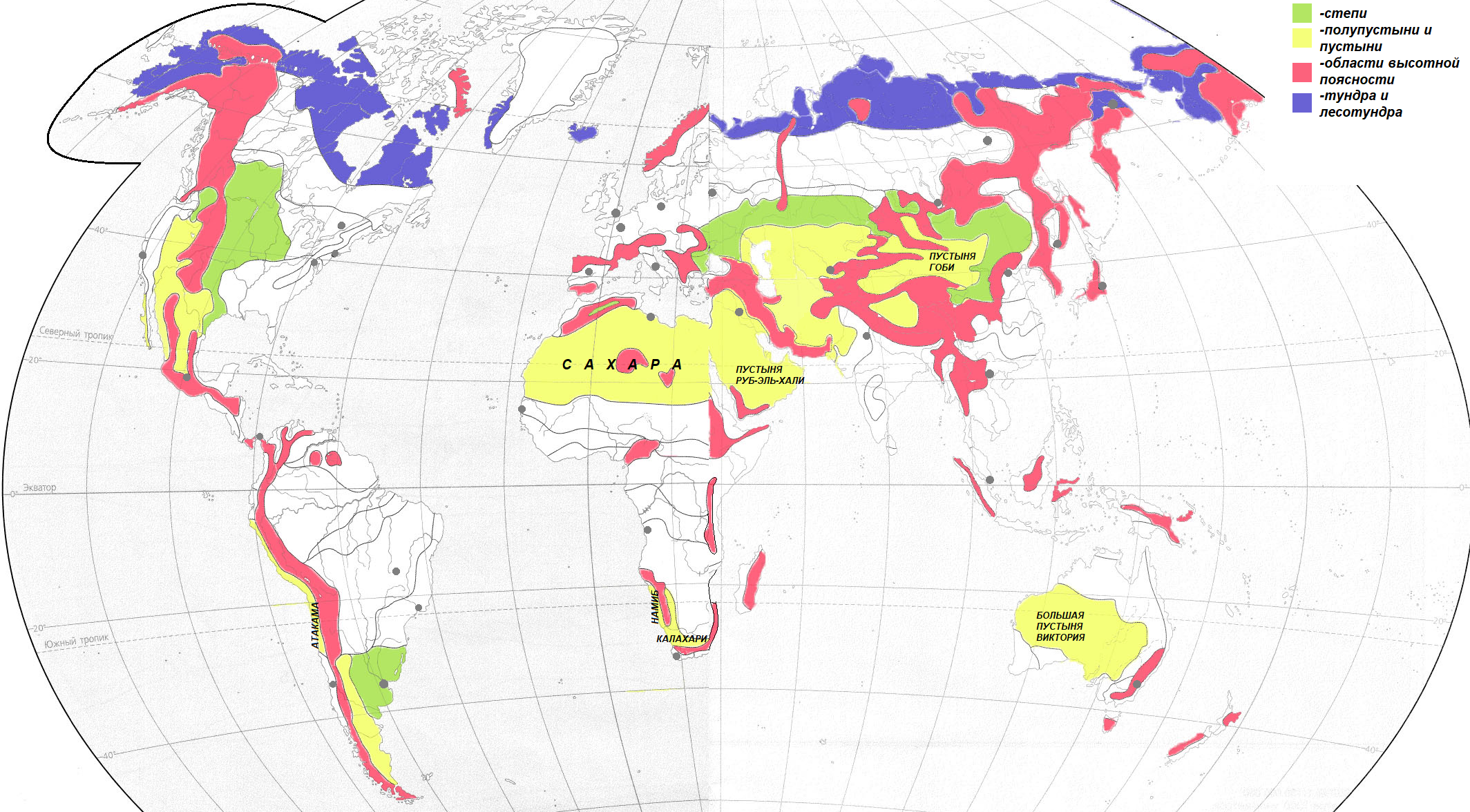 4. Территории, нарушающие проявление широтной зональности – области высотной поясности.