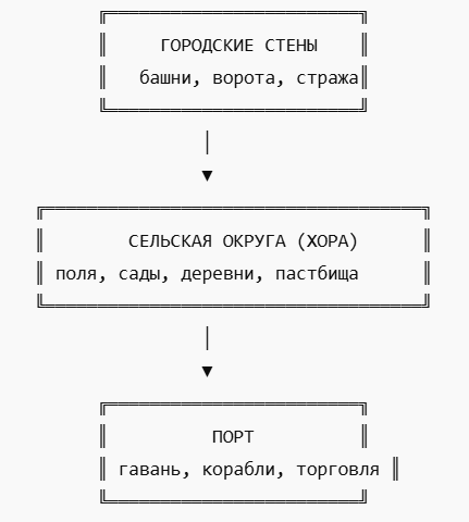 2. На основе текста параграфа нарисуйте схему типичного греческого полиса, обозначив на ней его основные части, такие как агора, акрополь, сельская округа и т. д.