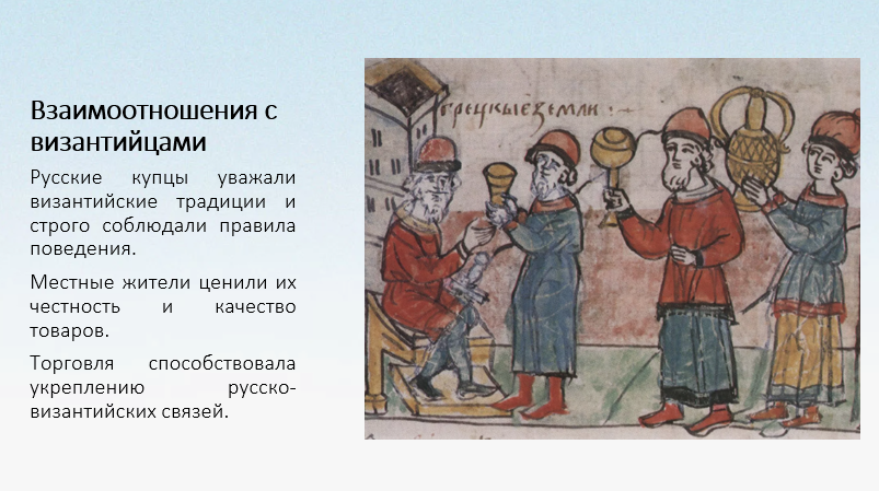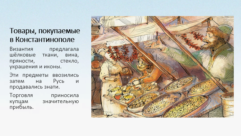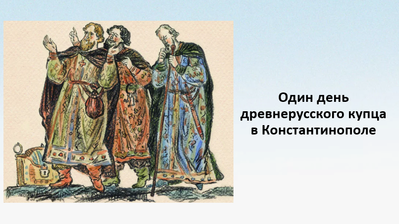 2. С помощью ресурсов Интернета или дополнительной литературы подготовьте рассказ с электронной презентацией (не менее 7 слайдов) на тему: Один день древнерусского купца в Константинополе. Выступите с подготовленной презентацией перед классом.