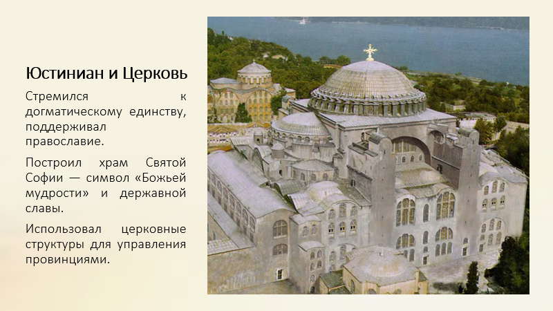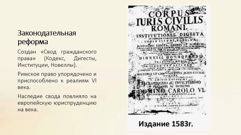 Добавить текст Вернуть оригиналГлавным инструментом прочности стал закон. «Свод гражданского права» упорядочил наследие Рима и позволил управлять многоязычной империей на основе единых норм. Храм Святой Софии стал каменным манифестом власти и веры — ответом императора и друзьям, и врагам. В итоге Юстиниан оставил после себя государство, утомлённое расходами, но вооружённое великим правом и великой архитектурой. Его успехи оказались частично временными, но образ «реставратора Рима» пережил века.