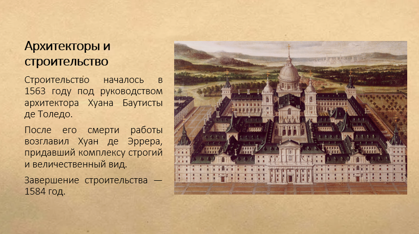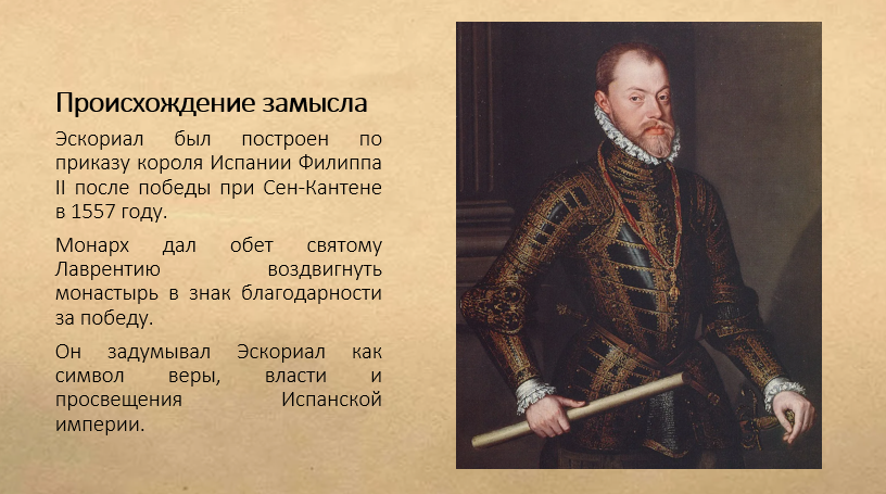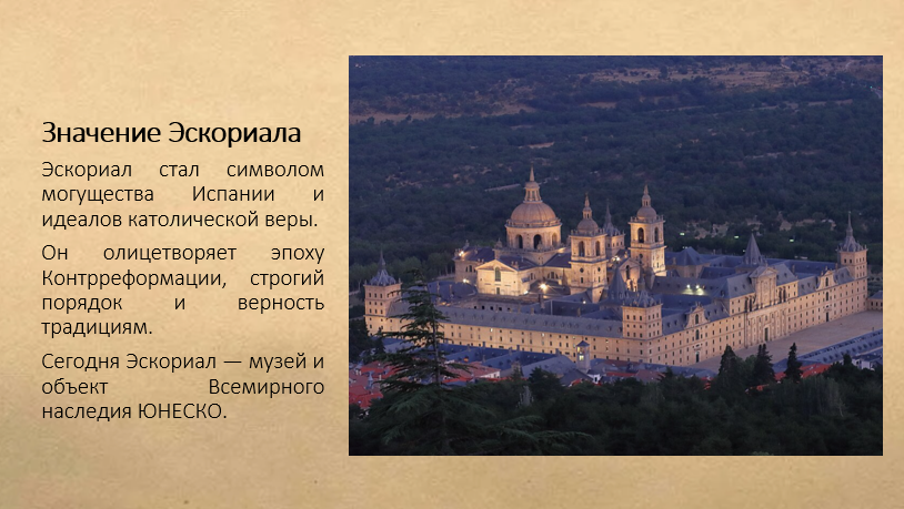 Добавить текст Вернуть оригинал3. Используя дополнительные источники, сделайте презентацию об истории Эскориала.