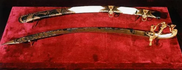 Добавить текст Озвучить Вернуть оригиналДрагоценное оружие. В Оружейной палате хранились сабли, мечи и доспехи, украшенные драгоценными камнями, золотом и серебром, что было характерно для царской сокровищницы, отражая не только военную мощь, но и роскошь московского двора.