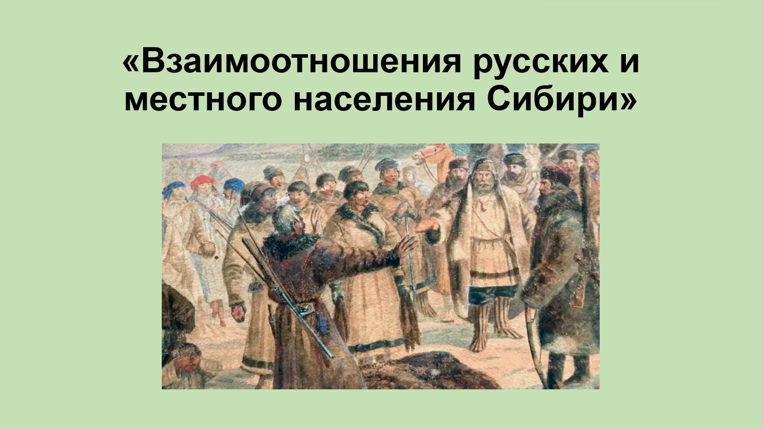 Добавить текст Озвучить Вернуть оригинал6. Подготовьте сообщение (презентацию) на тему «Взаимоотношения русских и местного населения Сибири и Дальнего Востока» (для поиска информации используйте интернет-ресурсы).