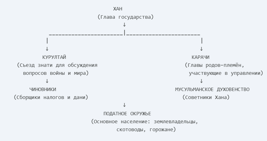 | Крымское | Наследники Золотой Орды. Основано на месте распавшейся Орды. Основная религия – ислам. Ведущее сословие – татарская знать. | Географическое положение: На Крымском полуострове, вассал Османской империи (с 1475 г.). Экономика: Главный доход – торговля живым товаром (рабами), полученным в ходе набегов. Политика: Основная угроза для Москвы, агрессивная политика набегов. |
