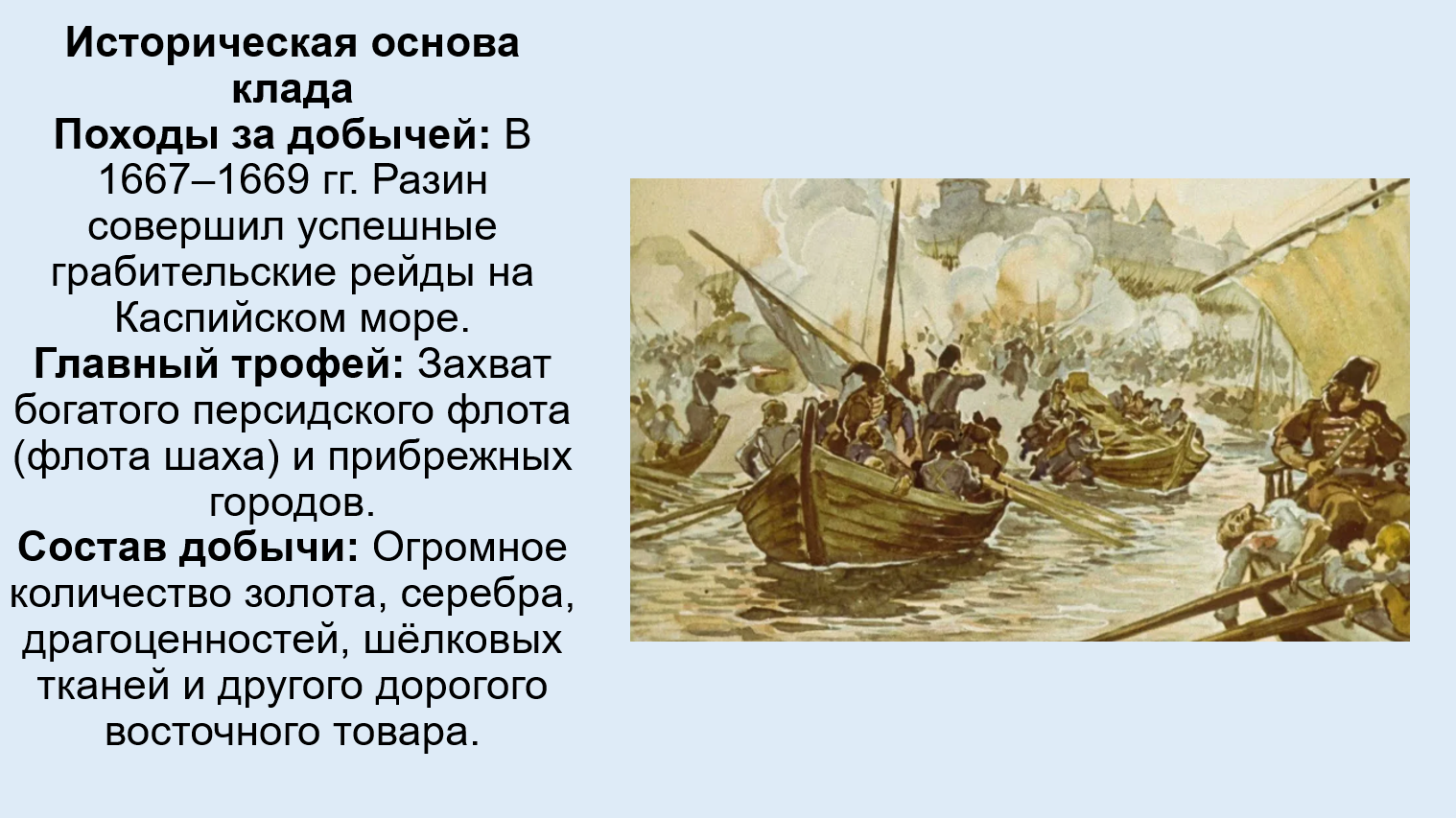 Поход за зипунами (1667–1669 гг.): Дон, Волга, выход в Каспийское море (нападение на персидский флот).