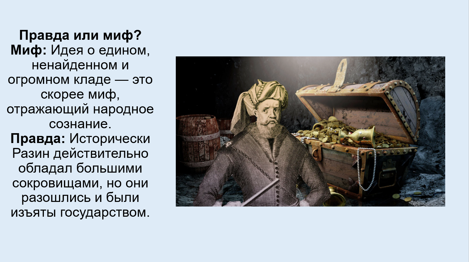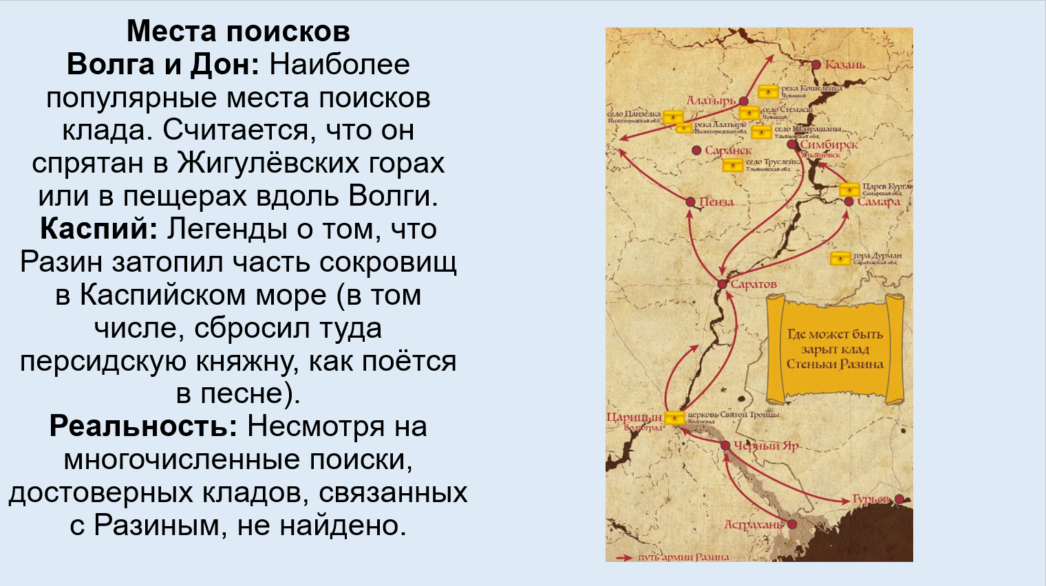 Добавить текст Озвучить Вернуть оригинал9. Подготовьте сообщение (презентацию) на тему «Клад Степана Разина: правда или миф» (для поиска информации используйте интернет-ресурсы).