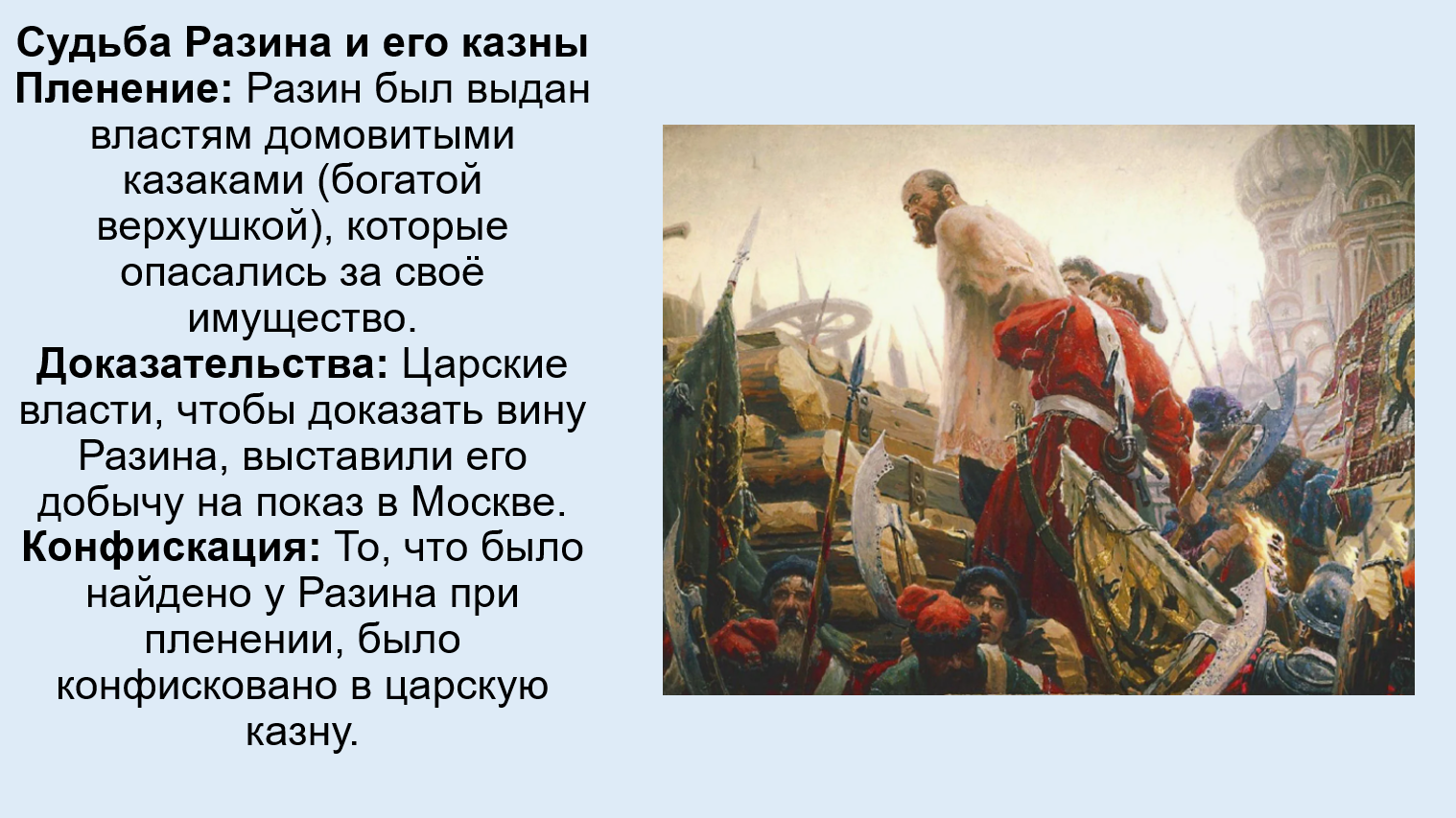 Подавление: Восстание было жестоко подавлено, а Степан Разин казнён.