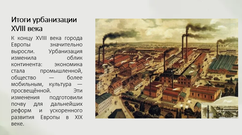 Объясните происхождение и смысл понятия «урбанизация». Используя дополнительные источники, подготовьте презентацию об урбанизации в Европе XVIII в.
