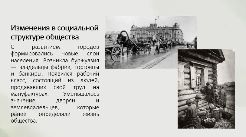 • Урбанизация: Увеличение численности городов и их роли в жизни общества.