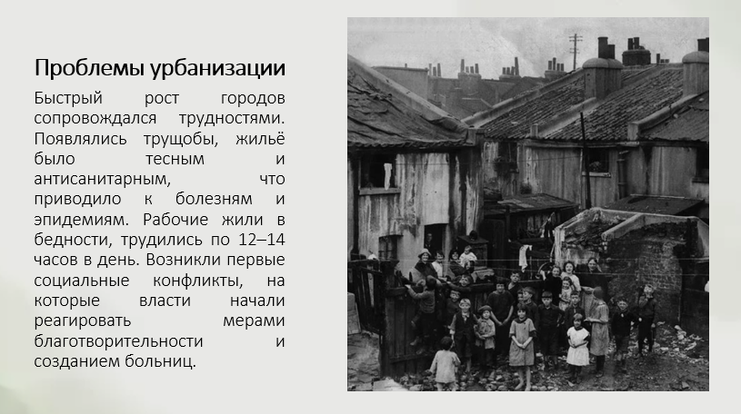 • Ростом численности населения и урбанизацией: Крупные города (Лондон, Париж) приблизились к миллиону жителей, и это потребовало изменений.