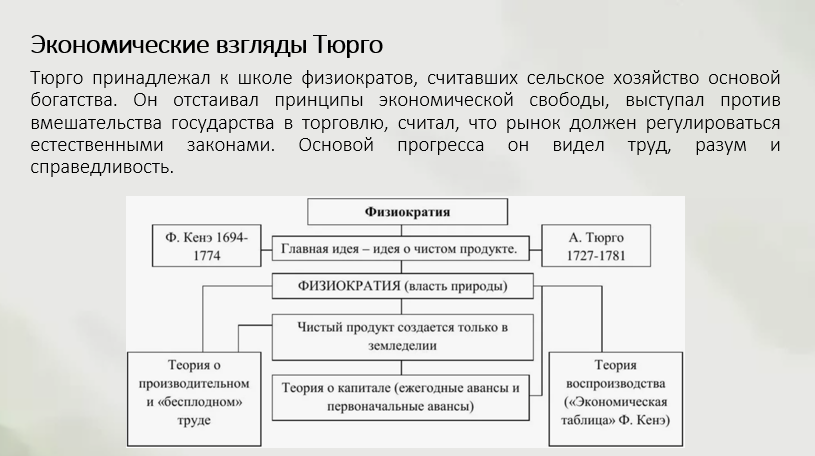 • По их мнению, только земледелие способно создавать чистый продукт — то есть, продукт, который остаётся после вычета всех расходов на его производство.