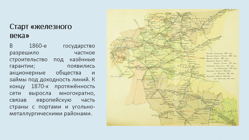 Добавить текст Вернуть оригиналВажность железнодорожного строительства для развития экономики России после отмены крепостного права доказывается следующими аргументами: