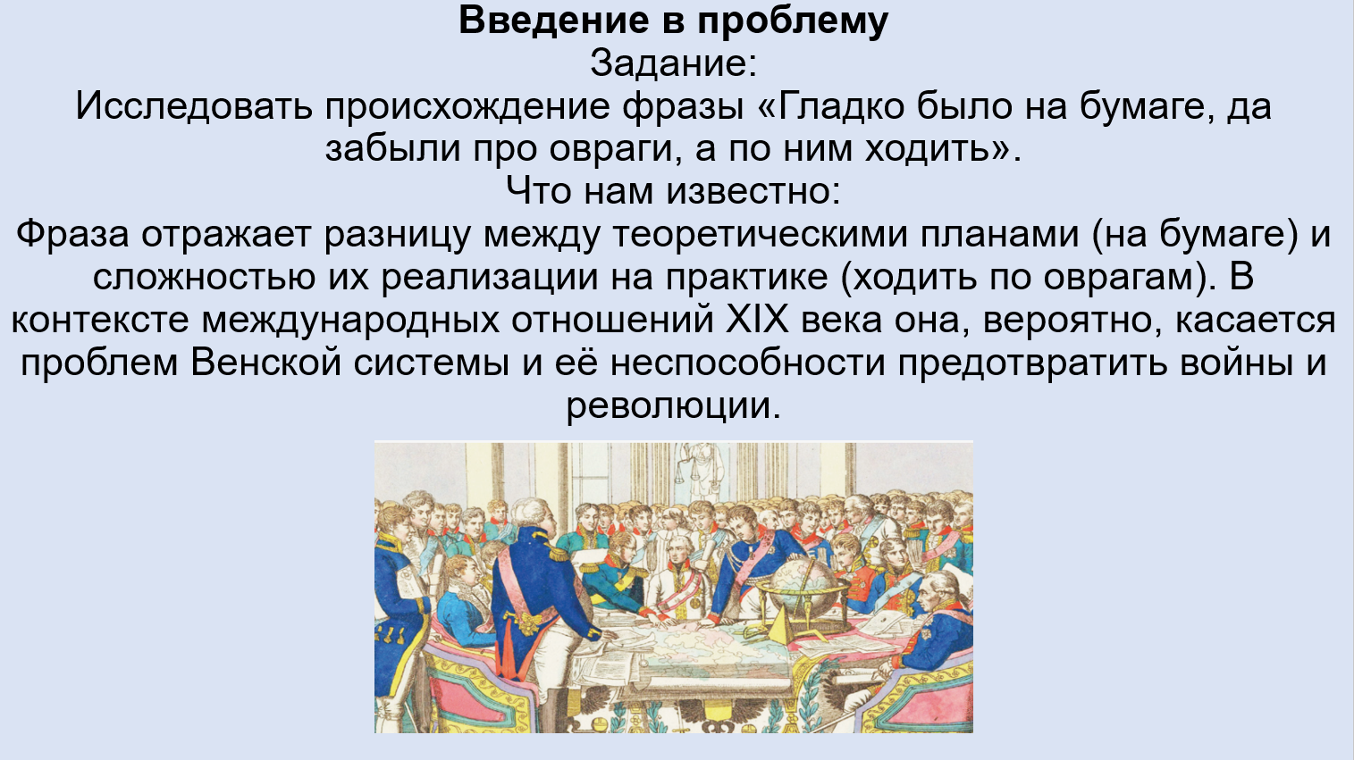 Главный вопрос главы: «Почему мир в Европе, установленный Венской системой международных отношений, оказался недолгим?» (согласно логике параграфов 7).