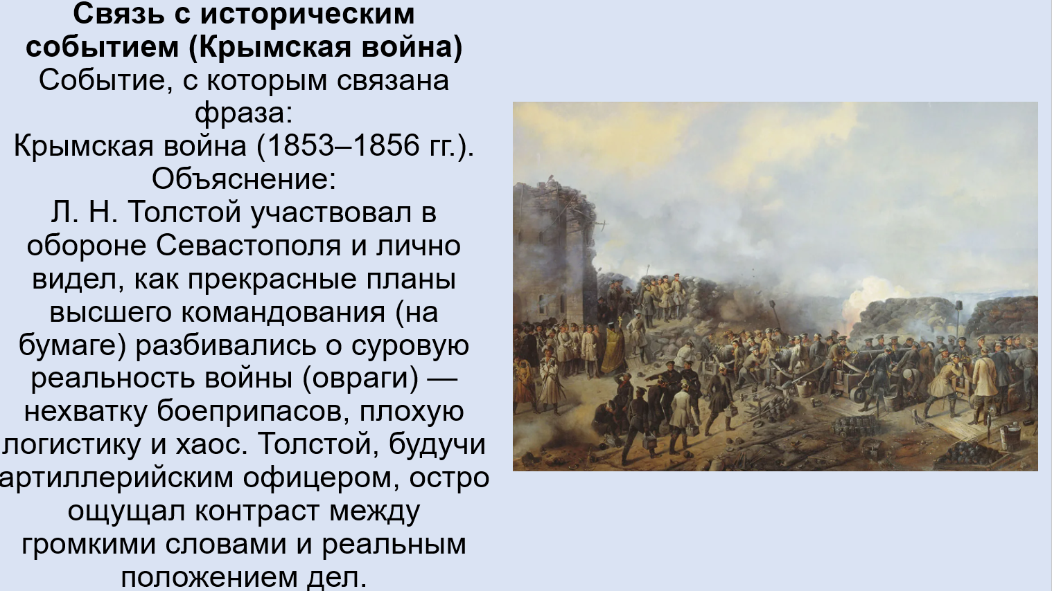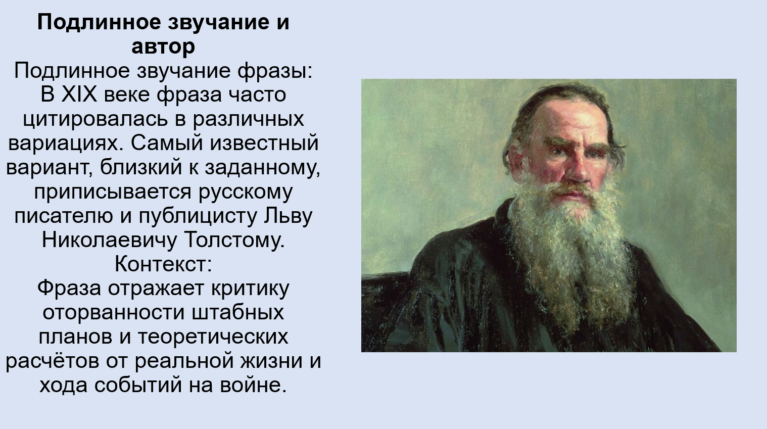 Добавить текст Озвучить Вернуть оригинал5. Прочитайте крылатое выражение: «Гладко было на бумаге, да забыли про овраги, а по ним ходить». С помощью дополнительных источников информации, узнайте подлинную фразу, определите её автора и событие, с описанием которого она связана. Как судьба автора строк связана с одним из изложенных в параграфе исторических событий? Результат оформите в виде презентации. Обсудите ее с одноклассниками.