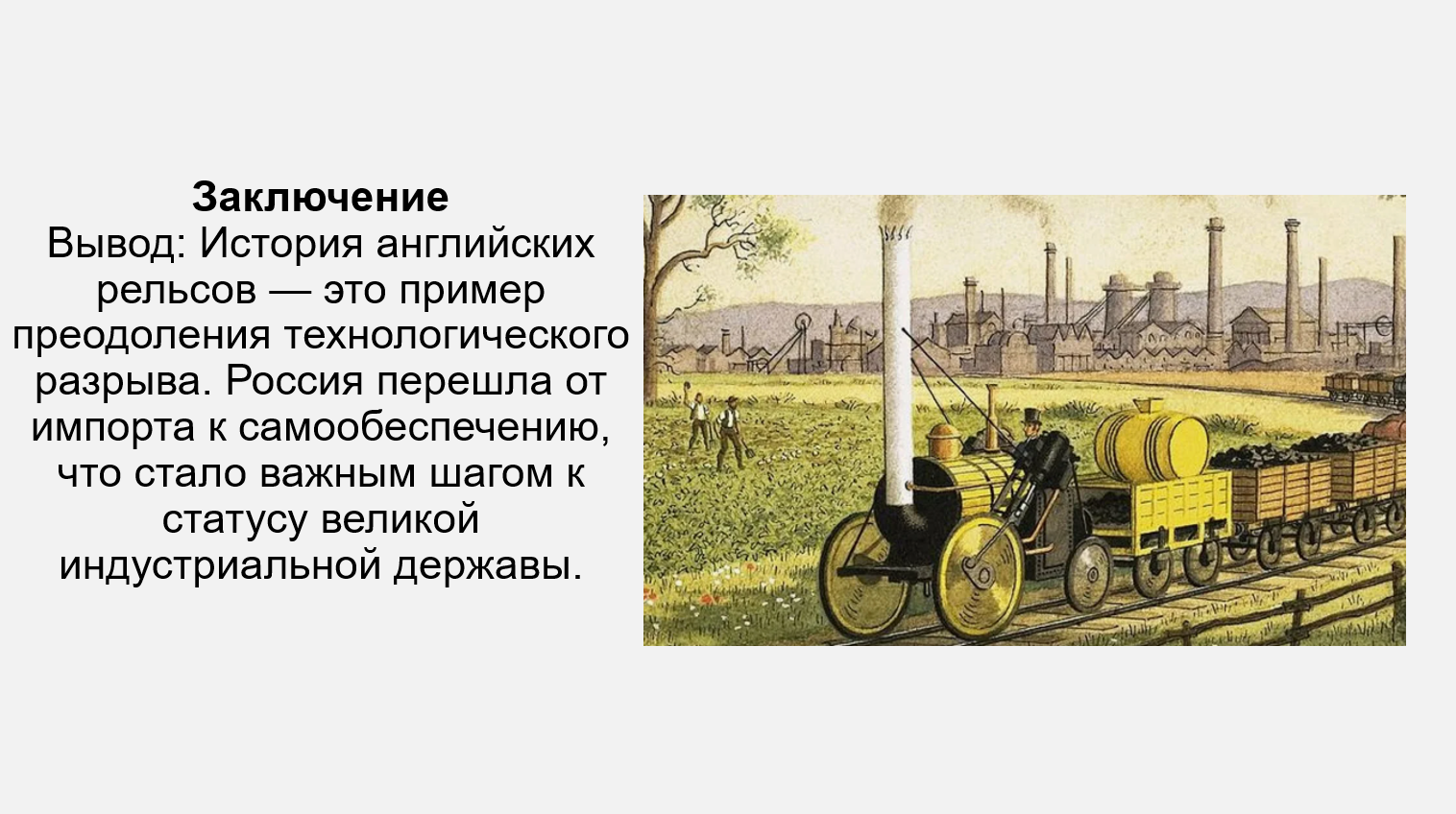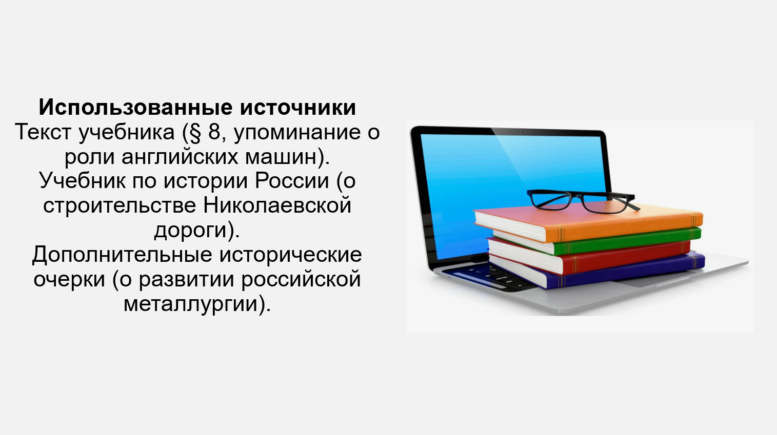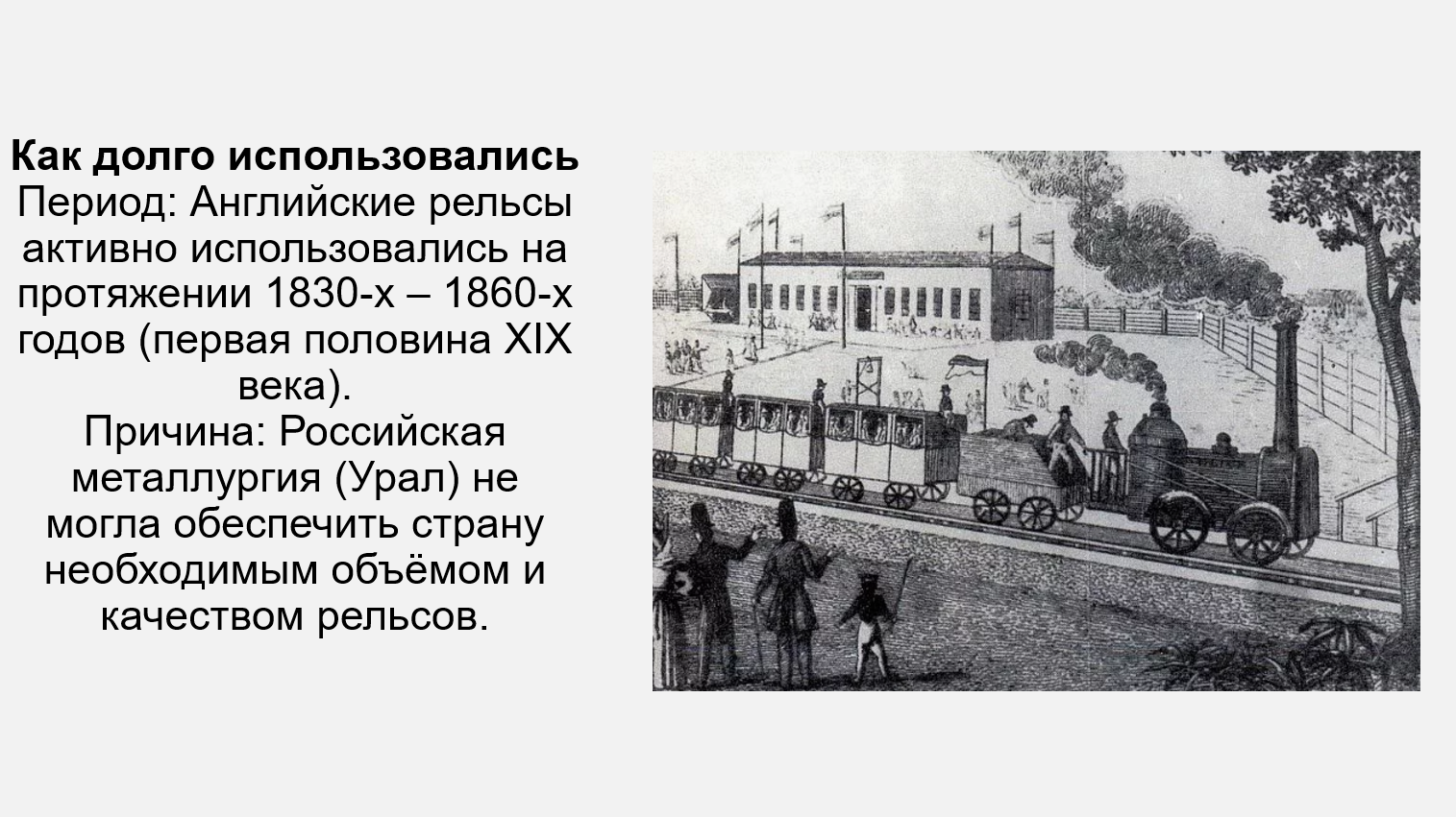 Добавить текст Озвучить Вернуть оригинал4. Используя дополнительные источники информации, подготовьте презентацию на тему «История английских рельсов в России». Выясните, на каких дорогах и как долго они использовались. Когда произошёл отказ от английских рельсов и о чём он свидетельствует? Перечислите источники, которые были вами использованы в процессе работы.