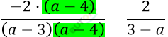\[\frac{2}{(a - 3)(a - 4)} - \frac{2^{\backslash a - 3}}{a - 4} = \frac{2}{3 - a}\]