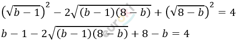 \[\left( \sqrt{b - 1} - \sqrt{8 - b} \right)^{2} = 4\]