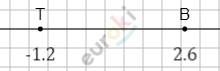 \[\left| 2,6 - ( - 1,2) \right| = |2,6 + 1,2| = |3,8| = 3,8\ \]