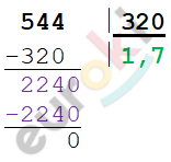 \[| - 5,44|\ :|3,2| = 5,44\ :3,2 = 1,7\]