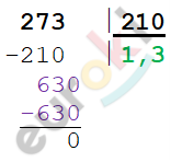 \[|2,73|\ :| - 2,1| = 2,73\ :2,1 = 1,3\]
