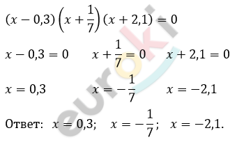 Решите уравнение: (x-0,3)(x+1/7)(x+2,1)=0.