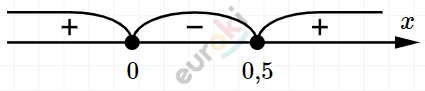 \[Ответ:\ x \in ( - \infty;0\rbrack \cup \lbrack 0,5; + \infty).\]