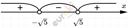 \[Ответ:\ x \in \left( - \infty; - \sqrt{5} \right) \cup \left( \sqrt{5}; + \infty \right).\]
