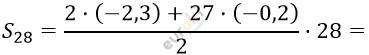 \[= \frac{- 4,6 - 5,4}{2} \cdot 28 = \frac{- 10}{2 \cdot 28} =\]
